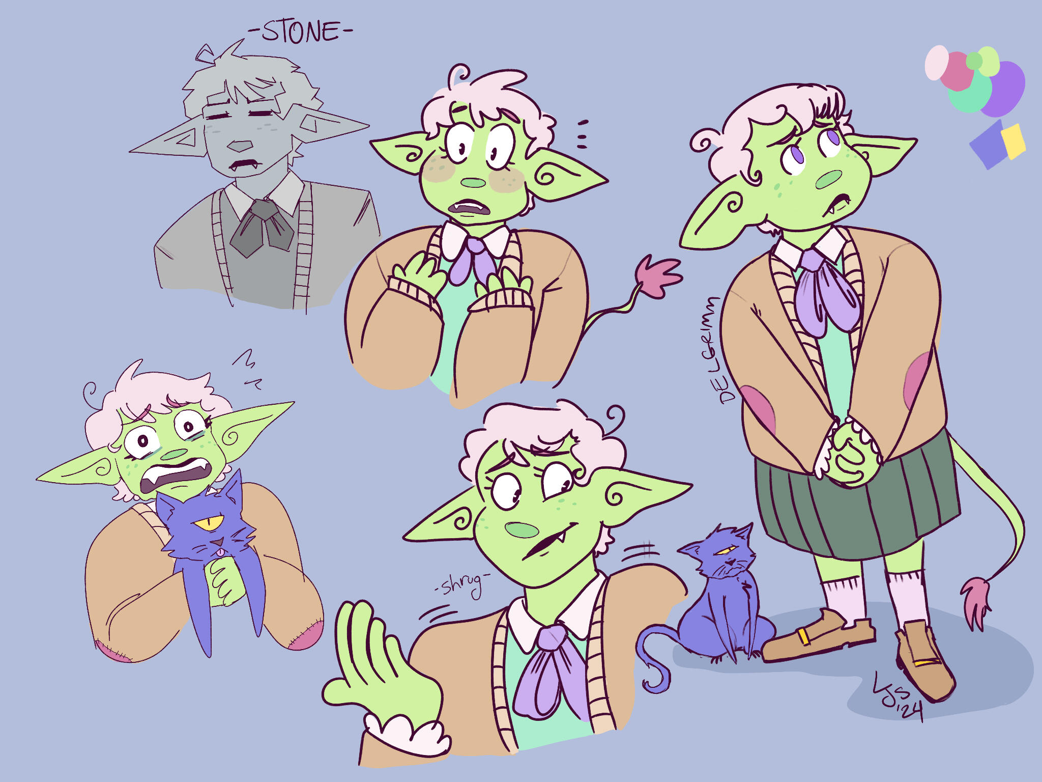 Hello, I have been drawing from a very young age, and have always been passionate about creating character designs. I would like to have the opportunity to help bring your ideas to life! I like to involve exaggerated traits and shapes to help emphasize different features on characters, and provide unique silhouettes.I could describe my style as being cartoon-adjacent. Please take a look at my site, and consider contacting me to help bring your character to life with a unique flair!